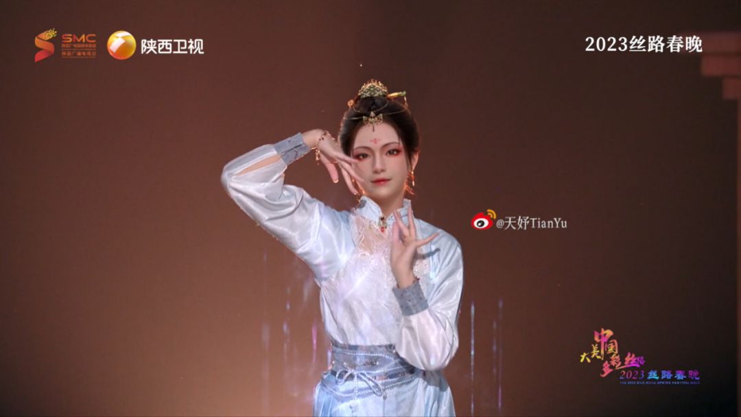 “這青瓷之青,果然國(guó)色?!薄拔覍⑷∵@抹青而去,重修壁畫!”伴隨著音樂(lè)聲漸漸落下,天妤著一襲海天碧色國(guó)風(fēng)服飾,手捧耀州青瓷的形象慢慢定格。大年初一晚,天妤亮相“大美中國(guó)·多彩