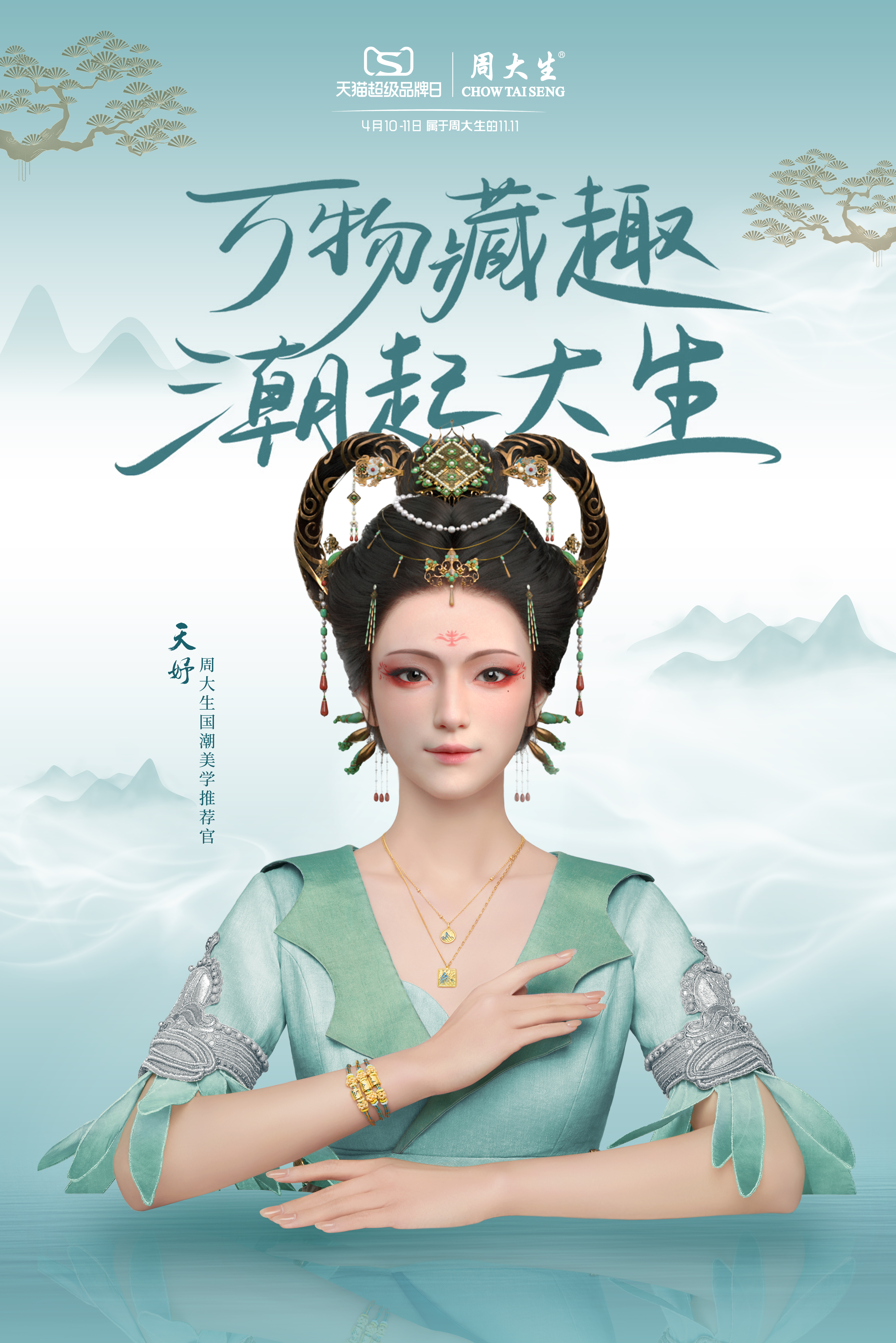 萬(wàn)物藏趣,潮起大生,“妤”生有你,未來(lái)可期。4月7日,天娛數(shù)科打造的首個(gè)國(guó)風(fēng)虛擬數(shù)字人天妤化身為國(guó)潮美學(xué)推薦官,攜手國(guó)內(nèi)知名珠寶品牌周大生,在春暖花開之際為廣大消費(fèi)者獻(xiàn)上了以