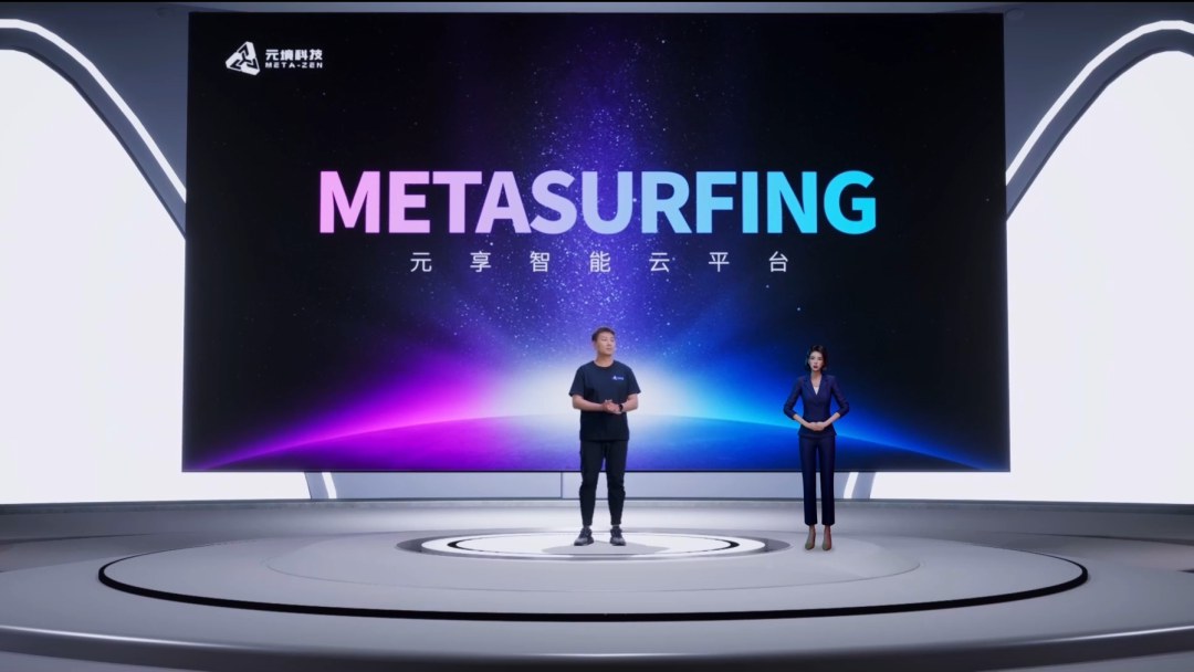2023年4月12日天娛數(shù)科旗下元境科技舉辦了自研虛擬數(shù)字化智能產(chǎn)品「MetaSurfing-元享智能云平臺(tái)」的產(chǎn)品發(fā)布會(huì)。此次發(fā)布會(huì)利用真人講解+虛擬背景這種虛擬與現(xiàn)實(shí)相結(jié)合的方