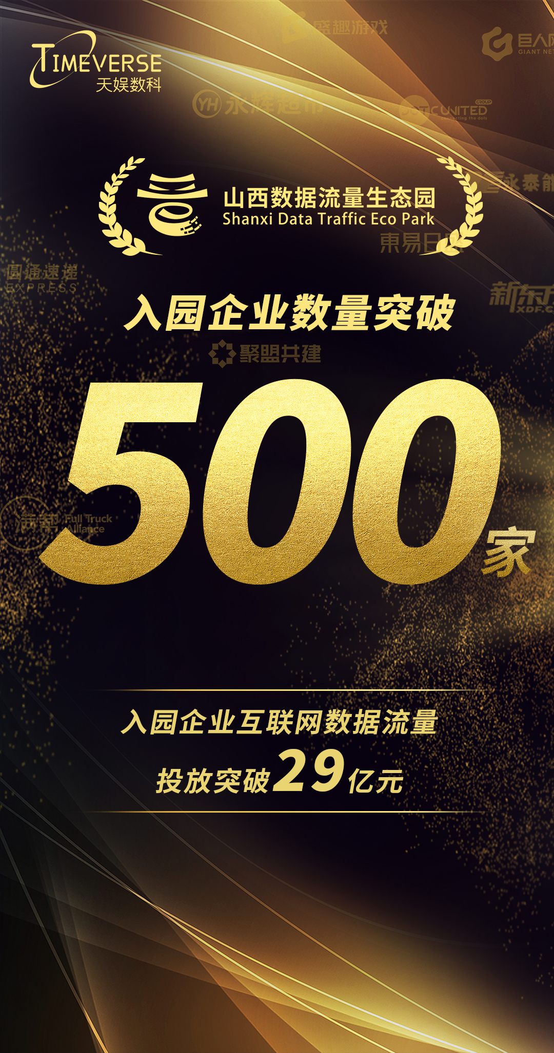 近日,天娛數(shù)科子公司山西數(shù)據(jù)流量生態(tài)園入園企業(yè)數(shù)量正式突破500家。新華網(wǎng)、人民網(wǎng)、中國(guó)日?qǐng)?bào)、中新網(wǎng)、中國(guó)網(wǎng)、山西日?qǐng)?bào)、山西經(jīng)濟(jì)日?qǐng)?bào)、中宏網(wǎng)等20余家主流媒體爭(zhēng)相報(bào)道,