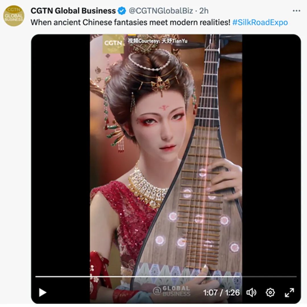 第六屆敦煌文博會(huì)期間,中國(guó)國(guó)際電視臺(tái)(CGTN)對(duì)天娛數(shù)科子公司元圓科技旗下虛擬數(shù)字人天妤進(jìn)行了連續(xù)三天的視頻推薦,在其Facebook,Twitter,YouTube、微博等多個(gè)官方賬號(hào)以及央視頻