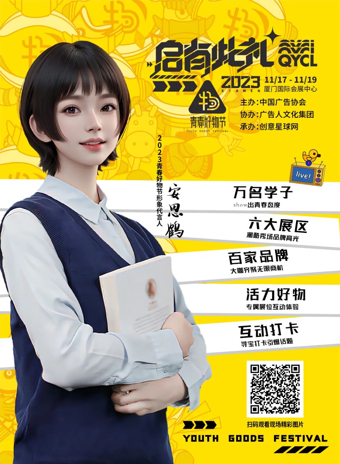 2023年11月16日,第30屆中國(guó)國(guó)際廣告節(jié)于廈門國(guó)際會(huì)展中心火爆開幕,天娛數(shù)科子公司元圓科技旗下由AI全流程打造的虛擬數(shù)字人安思鶴正式官宣為第30屆中國(guó)國(guó)際廣告節(jié)·2023青春好