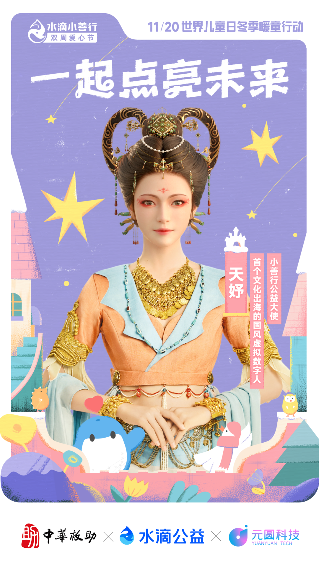 11月20日世界兒童日,天娛數(shù)科旗下國(guó)風(fēng)虛擬數(shù)字人天妤官宣擔(dān)任水滴公益“小善行公益大使”,呼吁大家關(guān)注兒童成長(zhǎng),守護(hù)希望之光,用愛和行動(dòng)溫暖孩子的健康童年?!八涡∩菩小笔?/p>