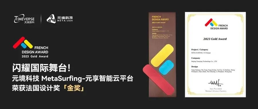 近日,2023 FRENCH DESIGN AWARD法國(guó)設(shè)計(jì)獎(jiǎng)公布獲獎(jiǎng)名單,天娛數(shù)科子公司元境科技自主研發(fā)產(chǎn)品「MetaSurfing-元享智能云平臺(tái)」憑借優(yōu)秀的產(chǎn)品體驗(yàn)和先進(jìn)的軟件架構(gòu)設(shè)計(jì)理念,榮獲